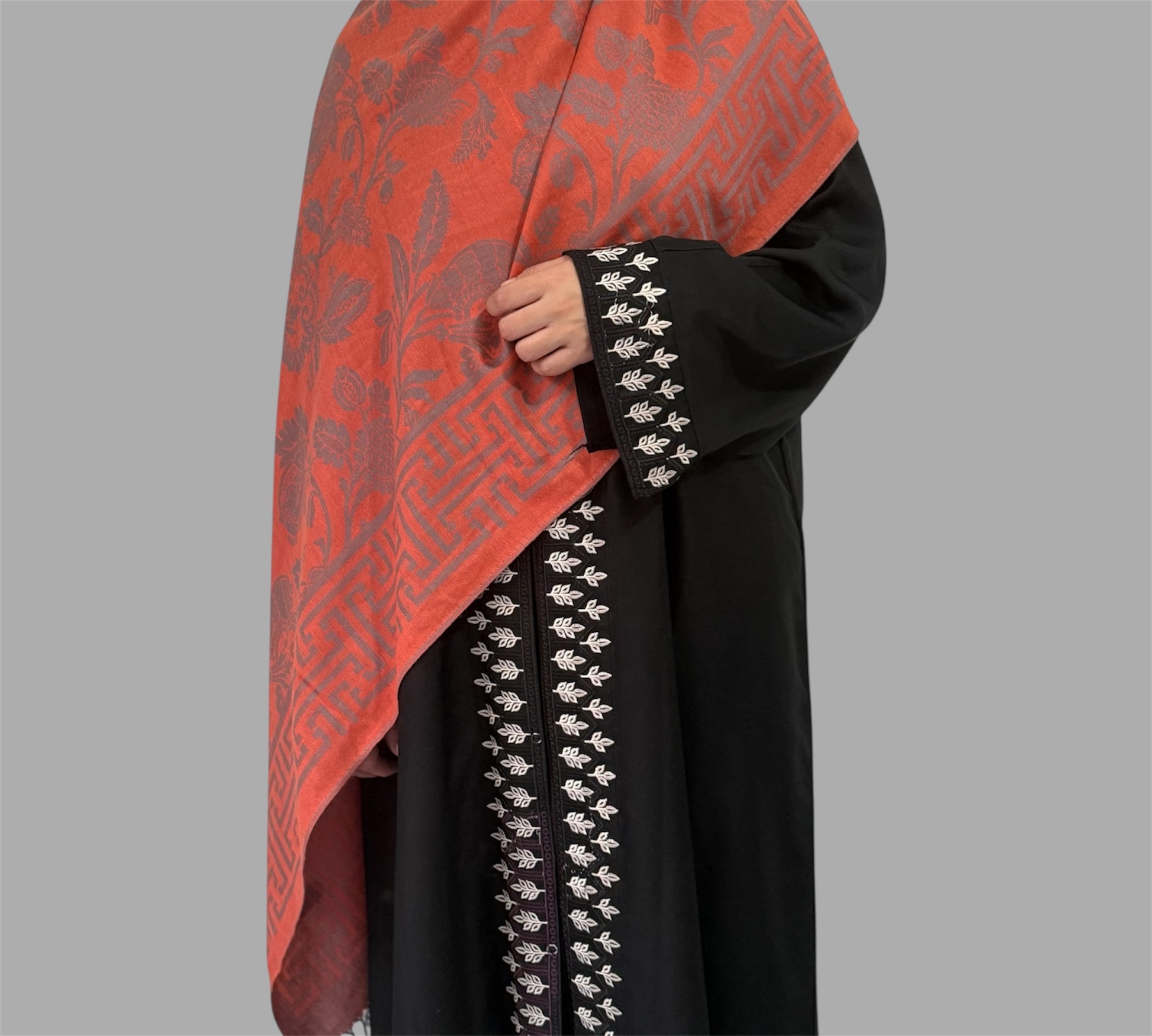 Add a touch of vibrant elegance to any outfit with the Saffron Bloom Pashmina. This luxurious shawl features a warm saffron-orange hue adorned with intricate jacquard floral patterns, blending tradition and modern style. Lightweight and soft, it’s perfect for both everyday wear and special occasions, bringing radiant color and refined charm to your modest wardrobe.